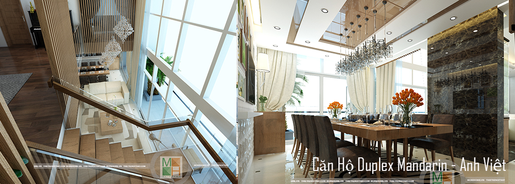 Thiết kế chung cư cao cấp Duplex Mandarin là một trong những thiết kế ấn tượng mang vẻ đẹp hiện đại mang đến không gian sống thoải mái và dễ chịu cho gia chủ. Nằm trong khu nhà ở tổng hợp với nhiều tiện ích, chung cư Penthouse Duplex Mandarin mang cái Tôi nổi bật với thiết kế lấy ánh sáng làm điểm nhấn. Tông màu nâu nhẹ nhàng kết hợp hài hòa với ánh sáng mang đến cảm giác trang nhã và tinh tế cho căn nhà. Các thiết kế nội thất Penthouse là những thiết kế sang trọng với kết cấu hai tầng riêng biệt vì vậy mà diện tích căn nhà được cơi nới khá rộng. Các không gian nhờ đó mà được chia tách rõ ràng mang đến sự thoải mái cho gia chủ. Thiết kế chung cư Mandarin gồm hai tầng, tầng một là toàn bộ khu sinh hoạt chung bao gồm phòng khách, phòng ăn và bếp hiện đại. Tầng hai là khu sinh hoạt và nghi ngơi của các thành viên trong gia đình.