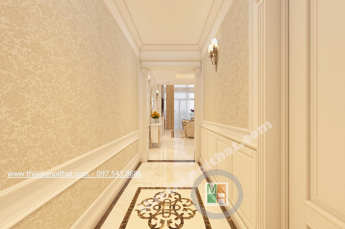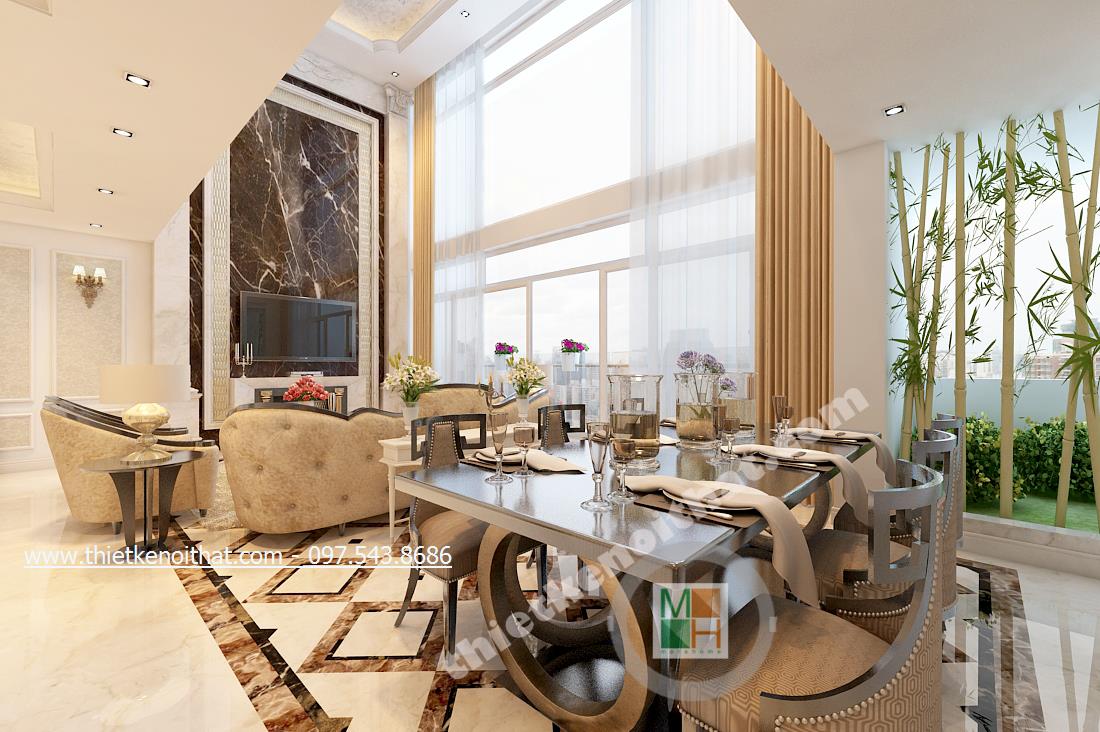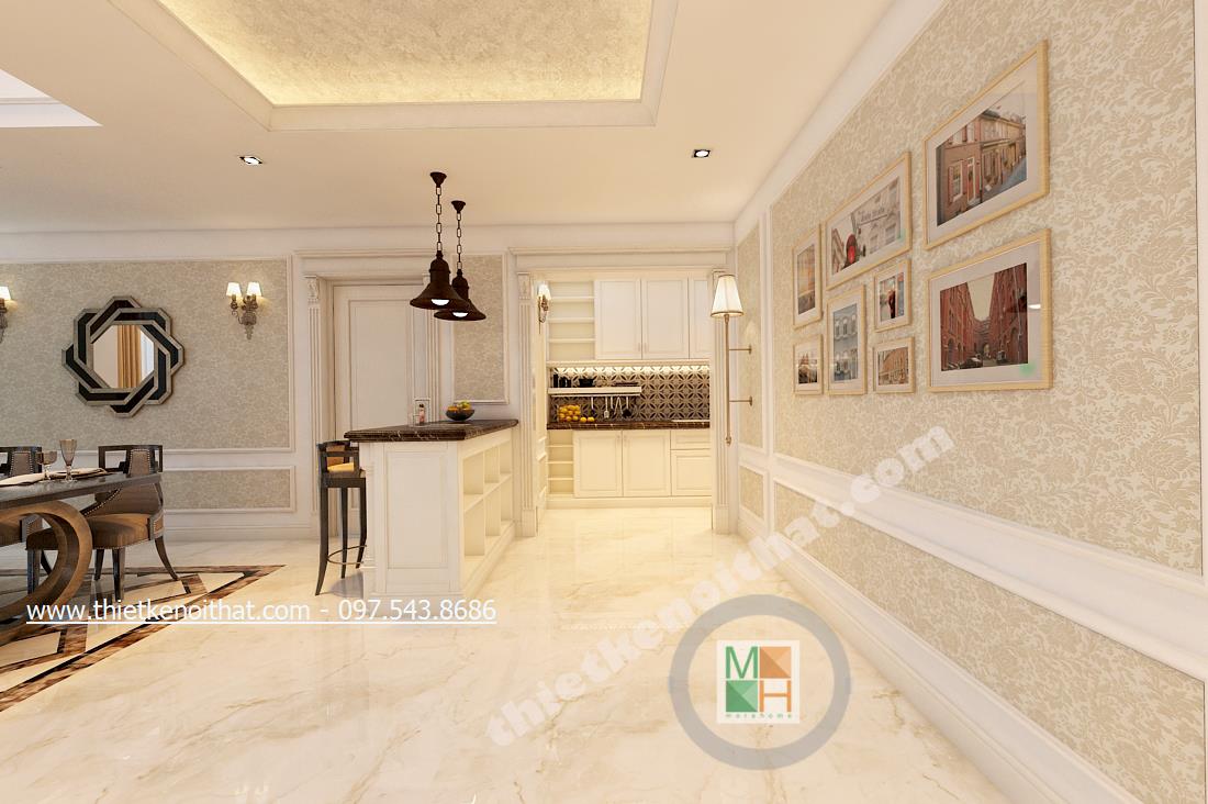 Tọa lạc giữa trung tâm quận Cầu Giấy năng động và nhộn nhịp, lại là căn hộ Duplex với 2 tầng tựa như một căn hộ con giữa chung cư hướng ra không gian đất trời rộng lớn nên thiết kế của căn hộ càng phải làm toát lên vẻ sang trọng và quý phái mà vẫn mang nét hiện đại cùng nhịp sống của thành phố. Do đó thiết kế tân cổ điển được lựa chọn đã giúp căn hộ càng trở nên hấp dẫn và hài hòa hơn.